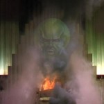 “Pay no attention to that man behind the curtain!” the gauzy image of the wizard head exclaims. The man, seeing he’s been discovered, stops turning the cranks and the scary face dissolves.