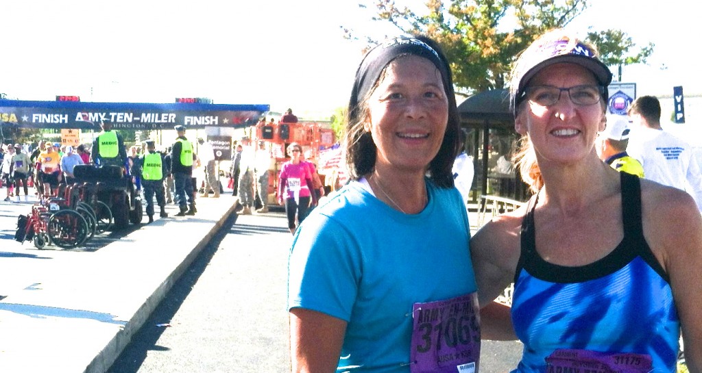 A year ago this month, Donna learned that the ovarian cancer she kicked the first time in 2010 had come back. Starting last October, she fought her way through two surgeries, endured weeks in the hospital (including over Thanksgiving), four months of chemo, and close to two months of radiation. Somewhere in there she decided she wanted to run the Army 10-Miler.