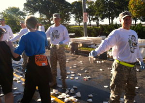 Then there were the soldiers manning the water stations, cheering us on in their camo pants and Army 10-Miler shirts. If only this could be their most dangerous assignment. In another example of our like-mindedness, neither Donna nor I could throw our empty cups on the ground, choosing instead to run a few extra paces to find a garbage can.