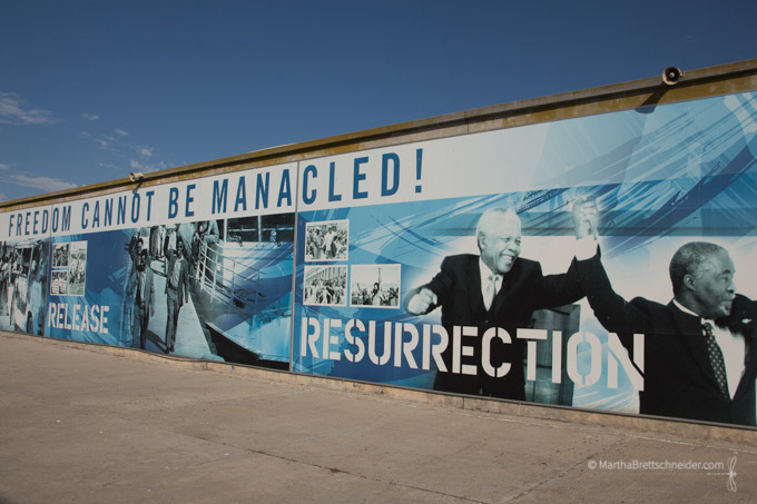 We visited Robben Island, now a World Heritage site, on our recent trip to South Africa. Our tour guide was a former inmate of the prison, having been arrested for political dissent as a teenager. As we passed through an open courtyard in the center of the structure, he told us that this was where the prisoners were allowed to exercise each day.