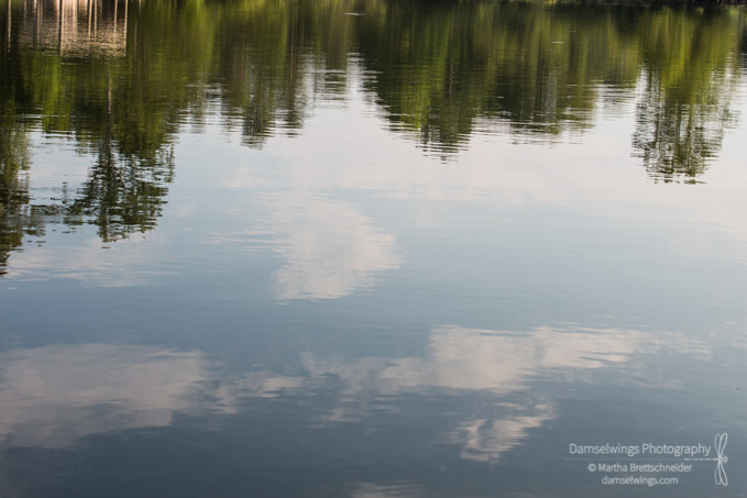 As I alternated between cycling the pedals (is that the correct verb for a paddle boat?) and stopping to tune in to the stillness, the reflections on the lake surface captured my attention. First, it was the clouds.